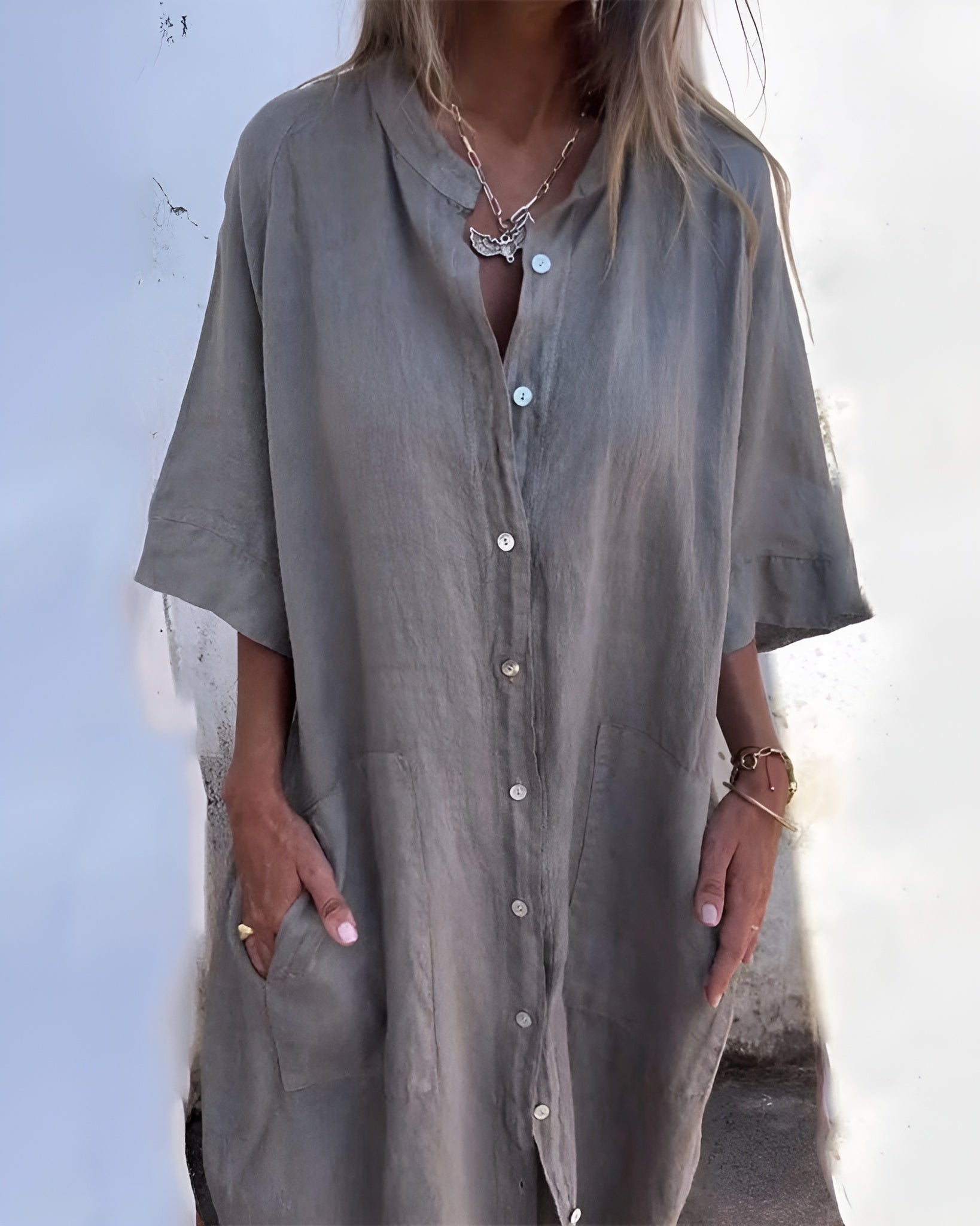 ELSA™ | Ibiza-stil avslappnad skjortklänning i ankellängd